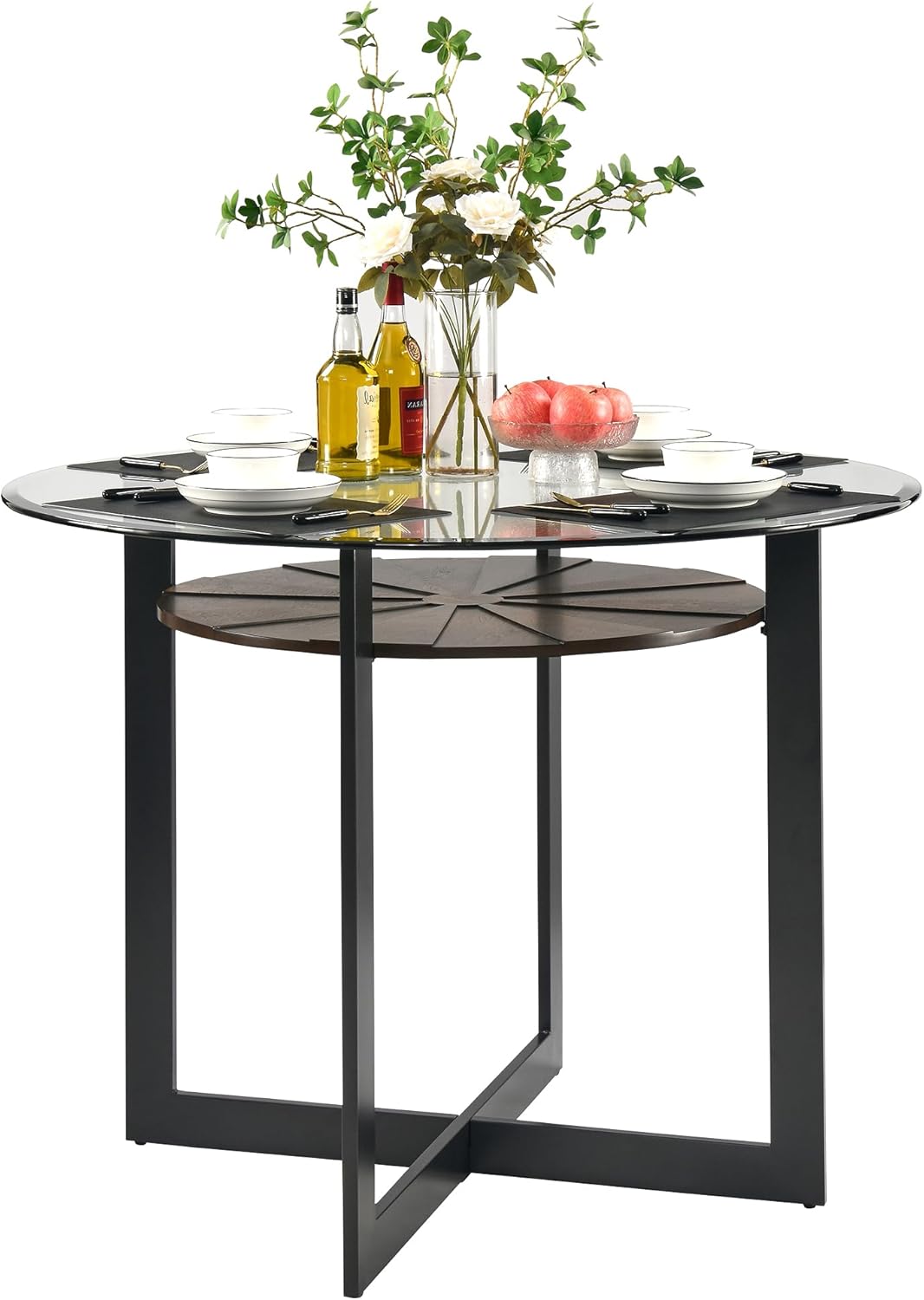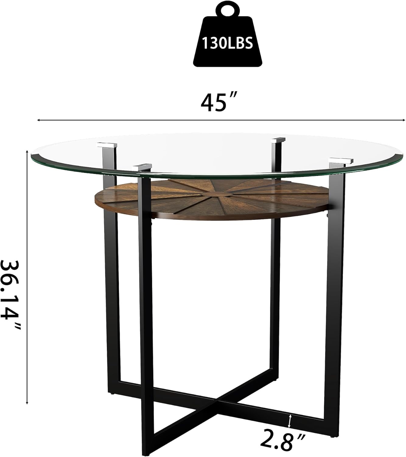 • 【Spacious & Secure Tempered Glass Top】Enjoy ample dining space and lasting durability with our 45-inch wide, 3/8” thick tempered glass tabletop, featuring a sophisticated bevel-polished edge for safety and style.