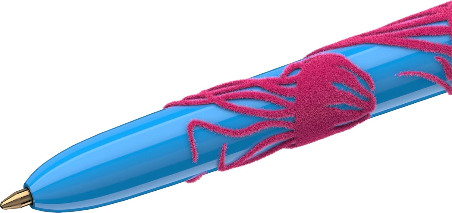 This pack contains 3 BIC 4 Colours Velours ballpoint pens with barrels covered in an attractive soft-touch velvet decoration and 3 great themes: jungle leaves, pretty pink flowers and a cute gecko. They revisit the iconic BIC 4 Colours pen in a playful and trendy way. The 4 medium 1.0 mm tips of this versatile ballpoint pen are suitable for any type of use. Its 4 ink colours (blue, red, green, black) make it easy to organise and memorise notes. Designed for maximum life and manufactured in Europe, each of these ball pens can write 8 km on average.