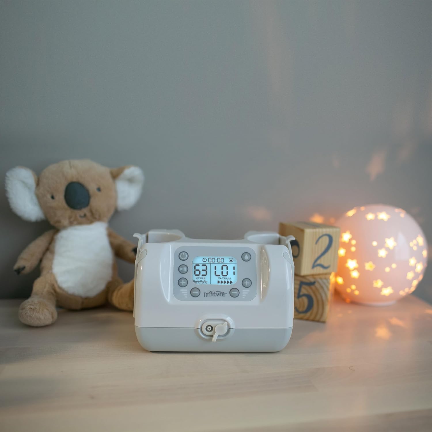 Powerful yet comfortable hospital strength pumping performance right at home! Dr. Brown's Customflow Double Electric Breast Pump helps you pump more milk, emptying breasts for an effective pumping session. Simple settings put you in control: two modes mimic baby's natural feeding pattern to support milk flow and adjustable suction and cycle allow you to find what works best for you. The built-in timer and start/pause button let you stop and start at your speed, while the last settings memory makes it easier to replicate your best milk production sessions. Soft 100% silicone flanges are flexible and gentle, conforming to different breast shapes and creating a seal for comfortable, efficient pumping. Compact, quiet, and with an easy-to-read backlit LCD screen, the Customflow is ideal for nighttime pumping. The pump's silicone stretch walls safely hold collection kits and bottles of all sizes to prevent spills. You'll have everything you need to pump, store, and feed with included Dr. Brown's Options+ Narrow Bottles, storage/travel caps and our slowest-flow Preemie Flow Nipple. Already have Dr. Brown's Wide-Neck Bottles? Use the included adapters to pump directly into your Wide-Neck bottle! For even more on-the-go pumping options, try our car adapter and rechargeable portable battery (sold separately). FSA and HSA eligible. Easy to assemble and clean. Bottles, bottle parts, and flanges are dishwasher (top rack) and sterilizer safe. Need help getting started or just looking for some advice? Contact Dr. Brown's to speak one-on-one with a Certified Lactation Counselor that is already familiar with your pump. Warranty valid in the US and Canada only. Two (2) Milk Collection Kits with two (2) SoftShape Silicone Shields, two (2) 4 oz/120 mL Dr. Brown's Options+ Bottles with Level 1 Nipples, one (1) Preemie Flow Nipple, two (2) Storage/Travel Caps, two (2) Narrow-to-Wide-Neck Adapters for Dr. Brown's Options+ Wide-Neck Bottles, one (1) 6V Power Adapter and two (2) Tubes.