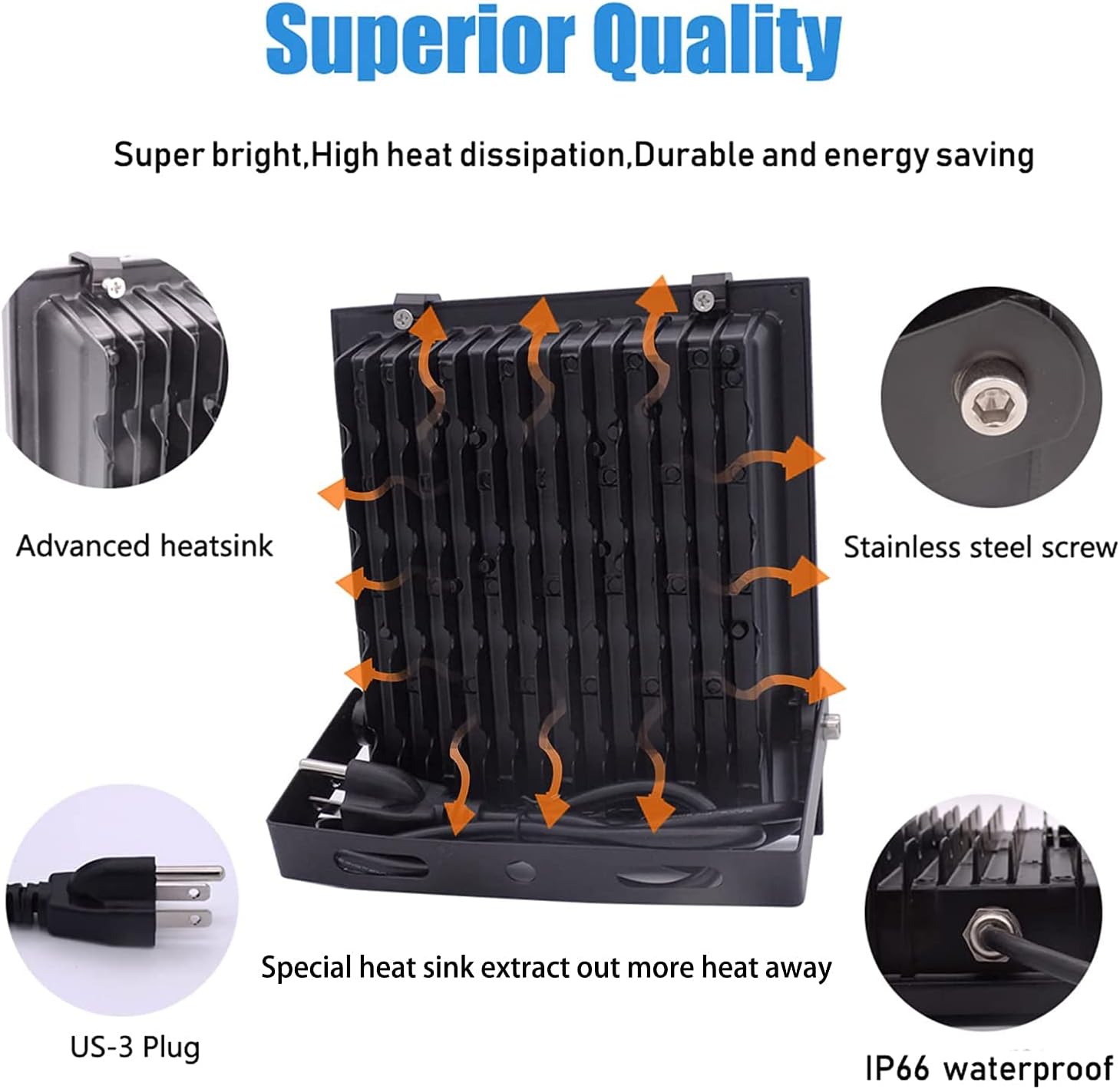Product Information Specification of the LED Work Light: ●Power:50W ●Weight:3.1LBS ●Size:8.25x9.5x2.25in ●Cool White 6000-6500K ●Lamp Luminous Flux(lm): 1100lm ●Input Voltage(V): AC85-265V 50/60HZ ●Working Temperature:-40~+50 ℃ (-40~+122℉) ●Waterproof:IP66 ●Color Render Index(CRI): ≥80Ra ●Power factor: ≥95% ●Beam Angle: 150° ●Outdoor lighting:Garden,Yard,Hotel,Square,Park Lot,Playground... ●Long lifespan>50,000hrs; 18 months warranty; ------If you have any question,please feel free to contact us. ●Certificate:CE & ROSH & CCC Package Included: 1 50W led floodlight 1 User Manual Energy Saving and Environment-friendly product ● No radiation, no lead , mercury and other pollution elements. Installation Notes ●Tie the cord around the bracket after use to avoid knotting.