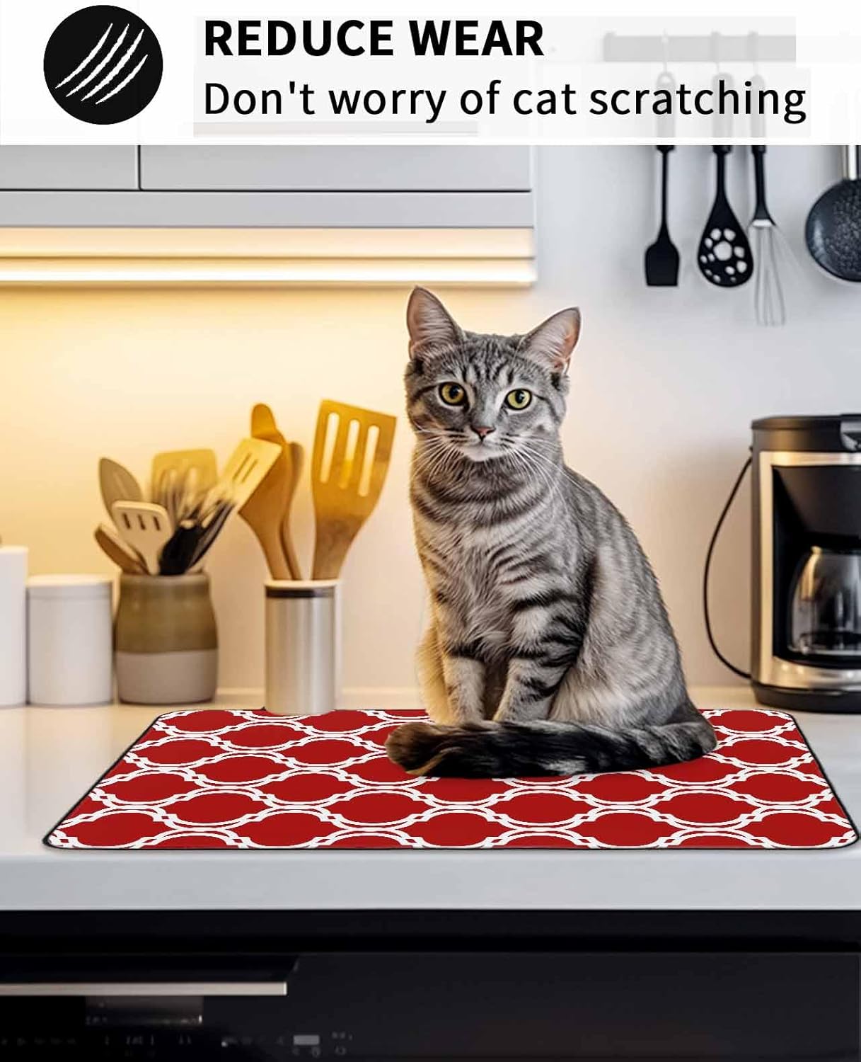 Stove Top Covers combine practicality and beauty, adding more color to your kitchen decorations.Product DescriptionMaterial: 100% Polyester cloth fabric surface with natural rubber backingSize Chart: 28.5x20.5 Inch / 24x21 Inch / 31x24 Inch / 36x21 InchExquisite WorkmanshipThe top is a layer of high-quality 100% Polyester and the bottom is rubber, which is waterproof, non slip, foldable and reusable. Will not move around when you prepare food on it.Counter Top ProtectorProtects electric, glass, or ceramic stovetop from scratches, scrapes, glass cracks, dirt & spills.Versatile UsesThe mat can be used as a stove top cover, counter top mat, ironing mat, washer top cover, coffee mat, flat top oven cover, dryer top cover, oven cover, refrigerator top cover, extra large rubber mat.Extra Counter SpaceThis stovetop cover is a one-stop solution for your many uses. It provides more worktop space for anything from food preparation to ironing. Therefore, this cooktop cover mat is perfect for kitchens with limited space.Ideal GiftThe exquisite pattern design makes the stove cover a perfect gift given to family friends and lovers. It adds color to your kitchen docor.Foldable and Easy StorageOur stove cover can be folded or rolled up and put away in your cabinet or cupboard when not in use.Special NoteNote: The mat may have creases from folding during shipping. This will smooth out in a couple of days.The colors may have slight differences due to different screens.